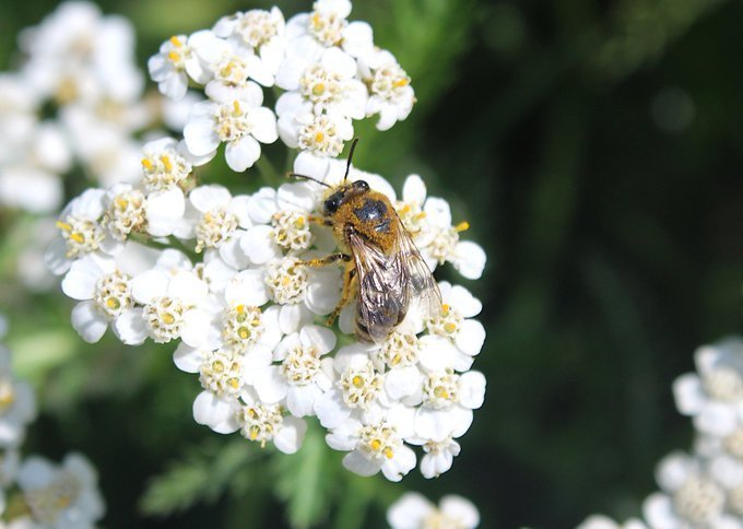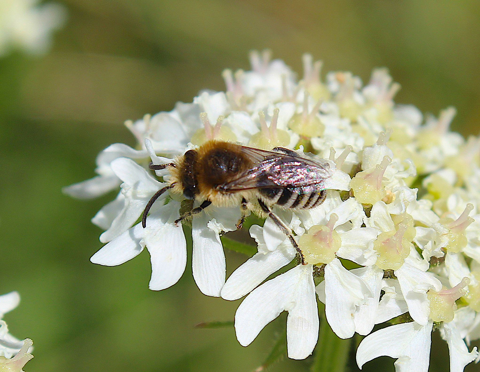 Personal Records: I have seen this species in sand dune systems on the east coast, such as Baltray Dunes in Co. Louth, Portrane Beach (Co. Dublin, Buckroney Dunes and Brittas Bay (Co. Wicklow) and The Raven and Ballyteigue Burrow (Co. Wexford). Both sexes can be encountered at these dune sites in summer by searching on umbellifers and composite flowers, particularly Wild Carrot, Hogweed, Ragwort, Yarrow and various hawkweeds. The nesting sites I have observed for this species are mostly partially-vegetated south-facing dune slopes, usually singly but sometimes in loose aggregations alongside Colletes floralis (although unlike that species it doesn’t seem to nest collectively in large numbers). Inland, it will nst in south-facing scrapes and banks, usually in light friable soils.