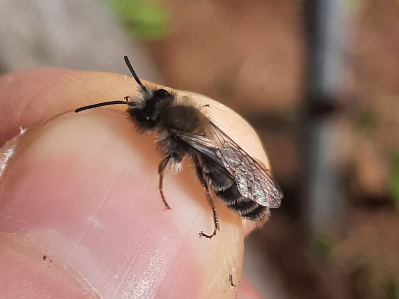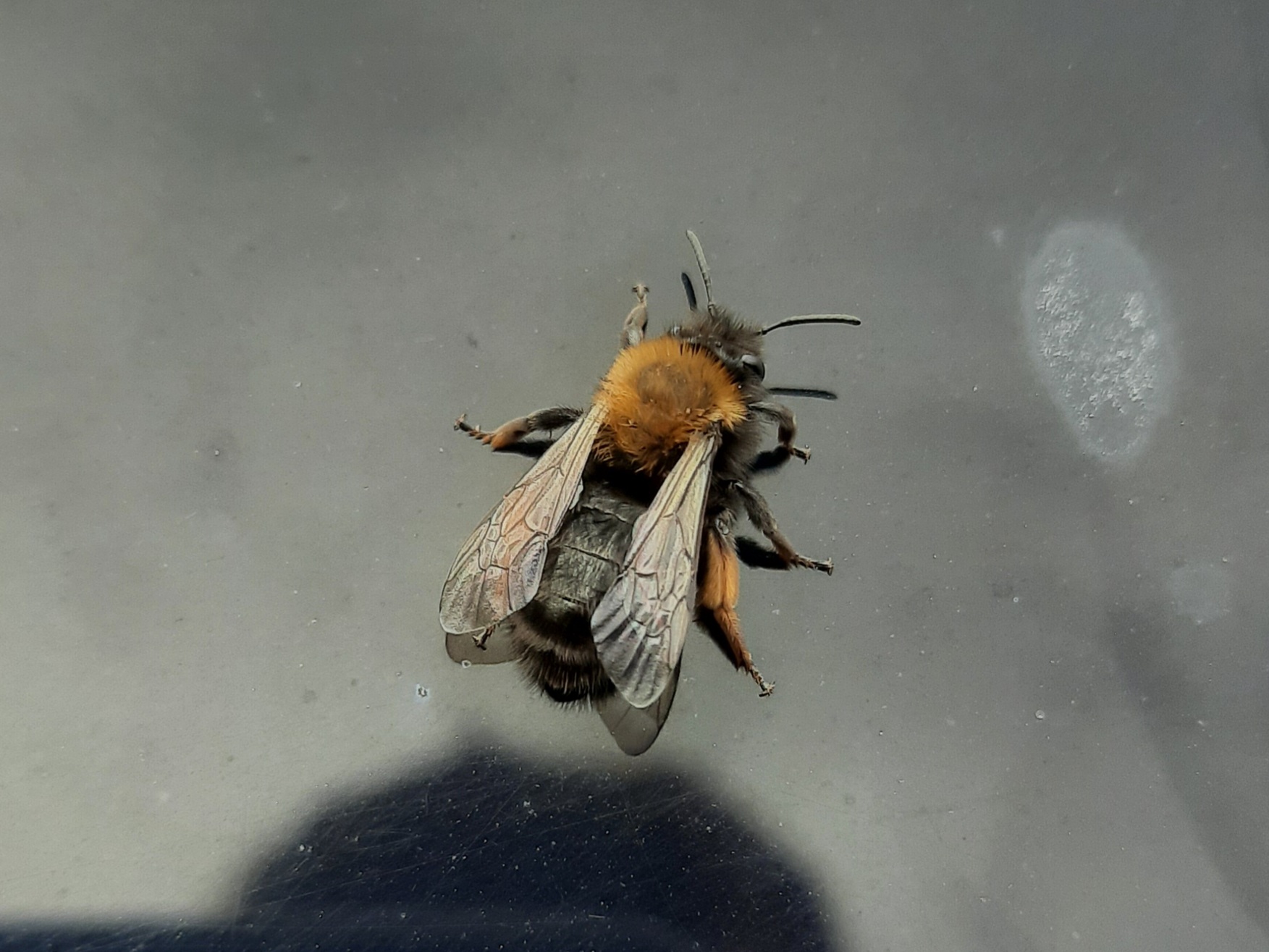 This is a fairly large spring-flying mining bee with a strong association with willows. Females measure around 13-15mm and have a rich brick-red thoracic pile, black face and abdomen and prominent orange hindlegs. The thoracic pile can fade rather quickly to a buffish-brown colour. It is similar to Andrena bicolor but its appreciably larger size is a reliable way to positively identify this species. The abdominal hairs are also completely black, whilst those of A. bicolor tend to be a mixture of black and brown. Males are smaller and slimmer with pale grey and buff hairs on the face, thorax and abdomen. They are one of the first solitary species to emerge each year.