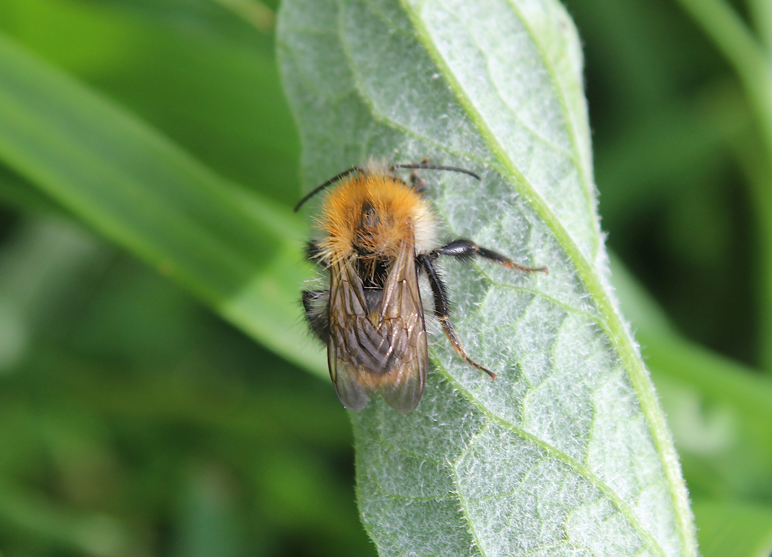 This is possibly Ireland’s commonest bumblebee and can be just as frequent in urban gardens as it can in remote coastal grasslands. It has a rusty orange coloured thorax and a small amount of orange hair at the tail-end of the abdomen. There is some amount of variation that can be seen within this species and the abdomen can have pale hairs (similar to B. muscorum) or dark hairs, but all individuals will have some amount of black hairs, which are diagnostic. It is a smaller bumblebee species which visits a wide variety of flowers.