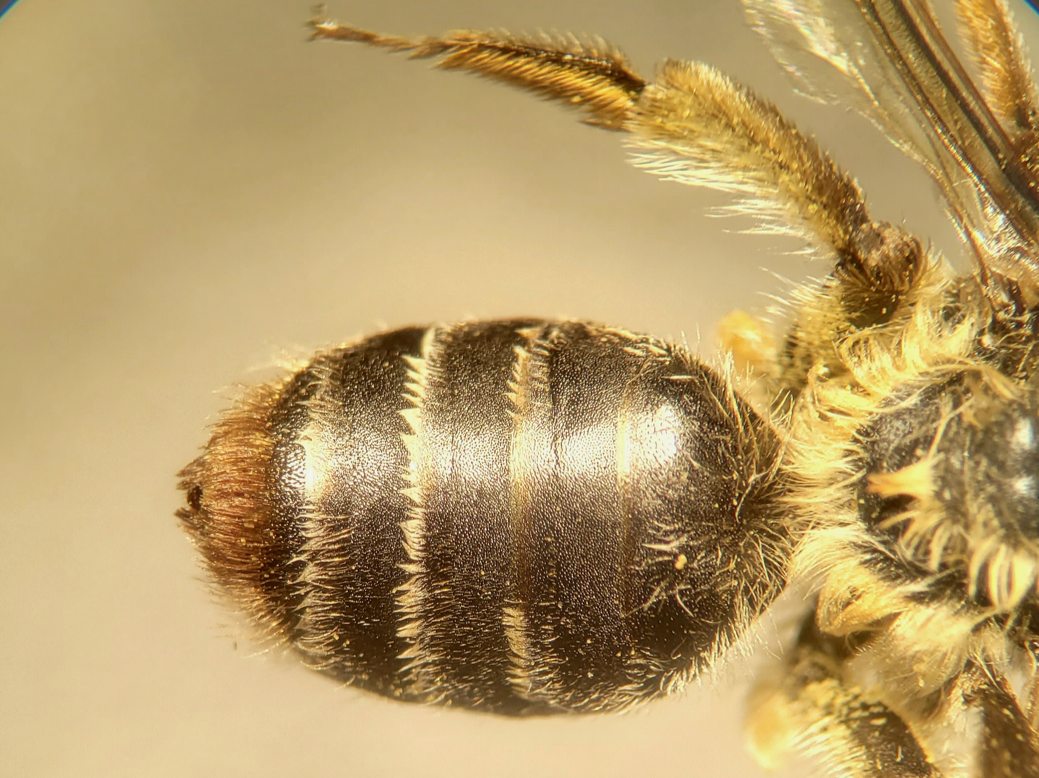 - Andrena ovatula (Female) abdomen showing the brown-haired terminal fringe