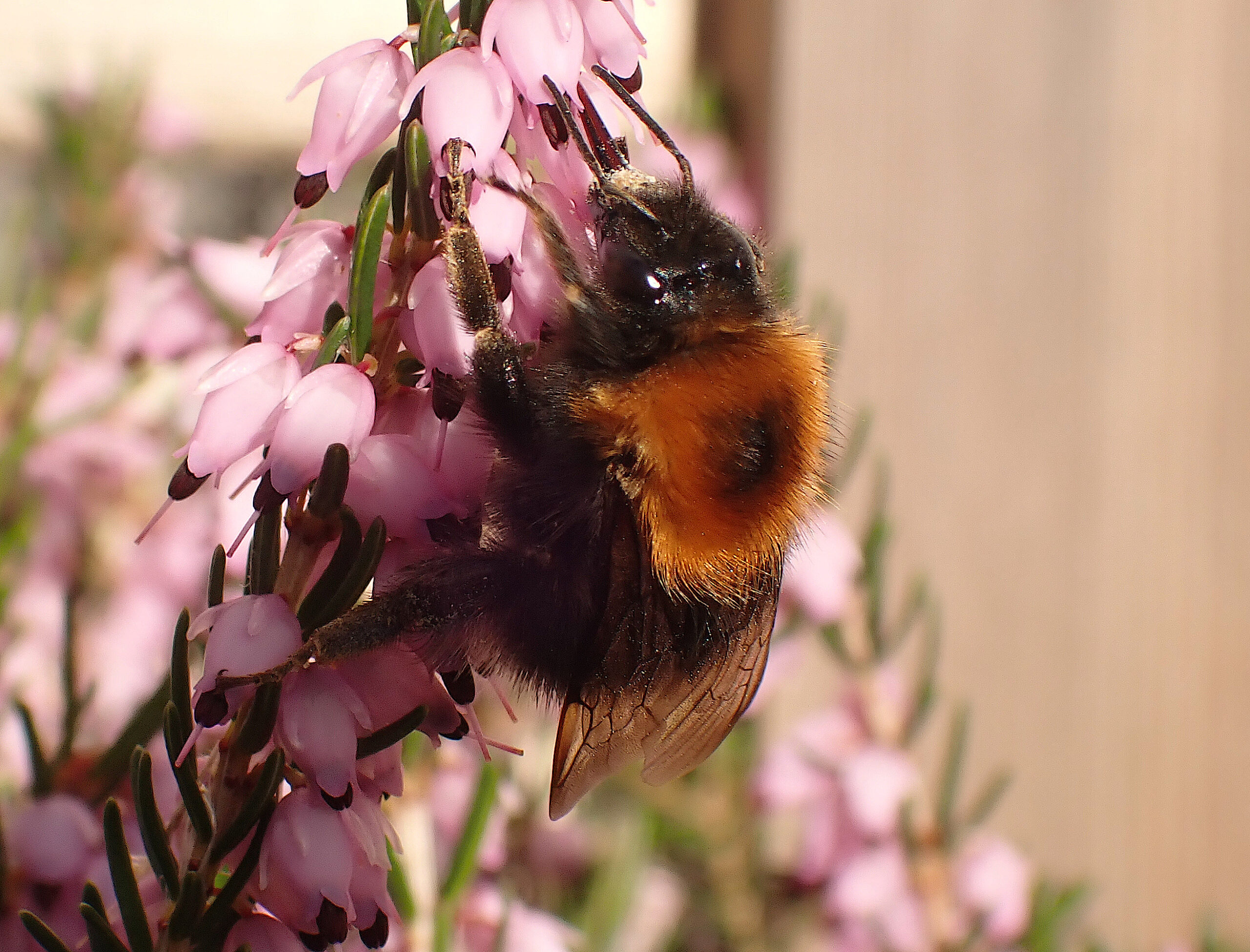This is Ireland’s newest species of bumblebee, having arrived here in 2014. Over the last 20 years, it has spread rapidly northwards from Southampton in southern England as far as the Isle of Mull in Scotland and now inhabits much of the UK. In Ireland, since it was first seen along the Co. Antrim coast it has since been seen near Belfast, Dublin, Cork and Co. Down and is expanding quickly. It has a distinctive appearance, with queens, workers and males all possessing a black body with a ginger thoracic pile and white tail. Unusually for bumblebees it nests well above ground and often utilises old birdboxes.