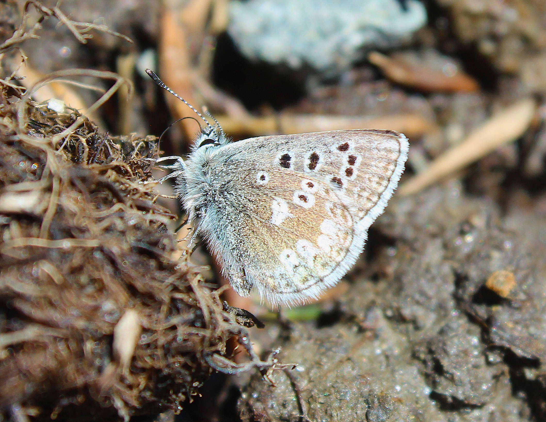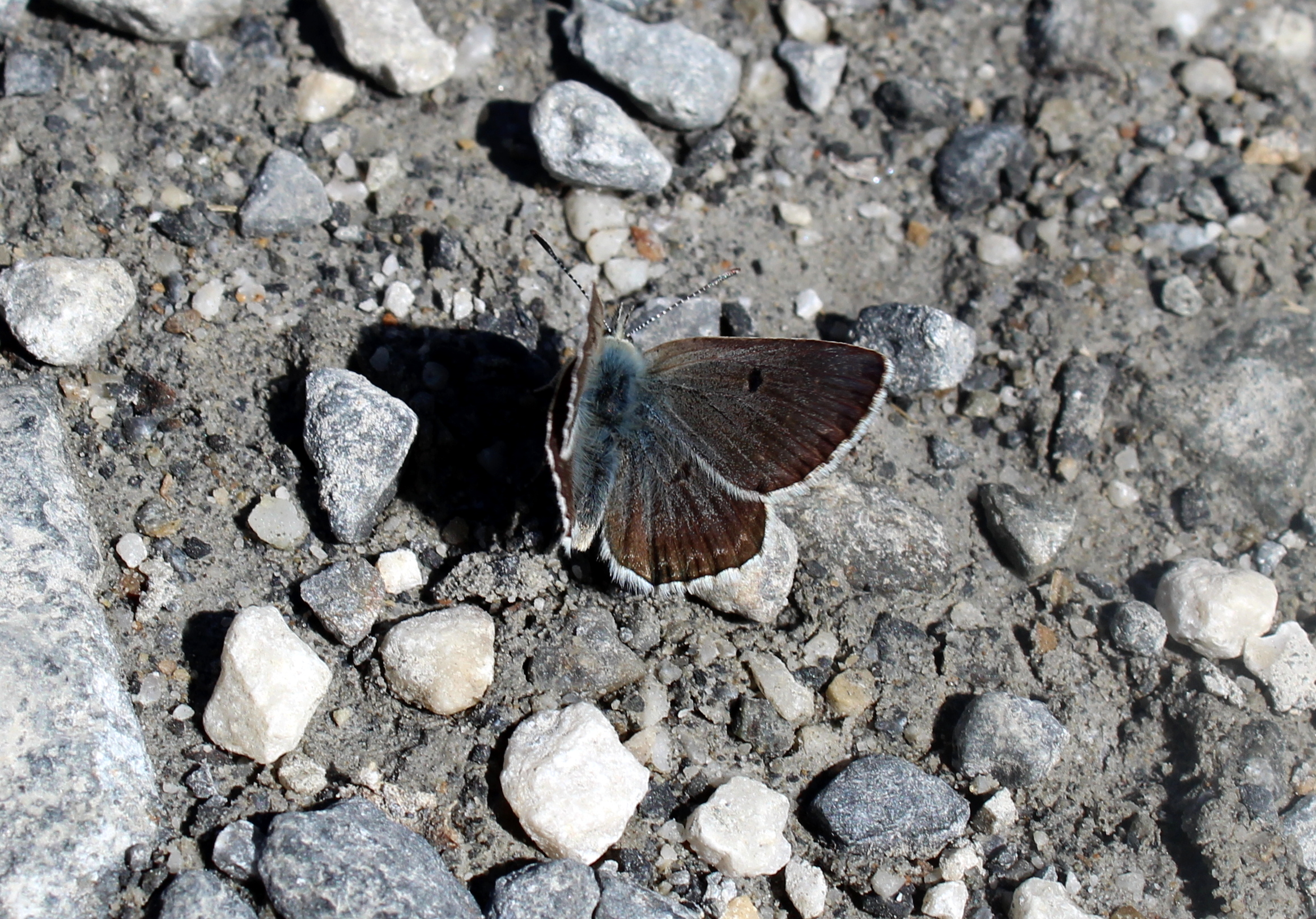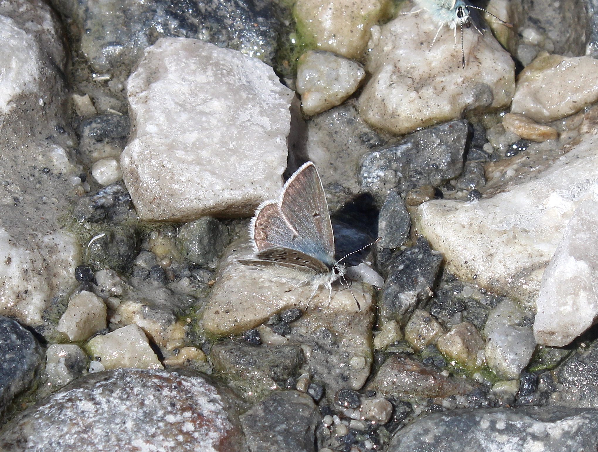 The Glandon Blue is a mountain species, rarely being found lower than 1700m and frequently occurring right up to the snow line. The upperside of the male is a dusty grey-blue and that of the female is a dull brown but both possess discoidal spots on the upperside which are often fringed white. These along with the underside are the main identifying features and help separate it from the similar Gavarnie Blue which can occur in the same areas in the Pyrenees. It occurs in small isolated colonies restricted by larval foodplants although both sexes will wander and feed off damp ground. Males are more often found then females.