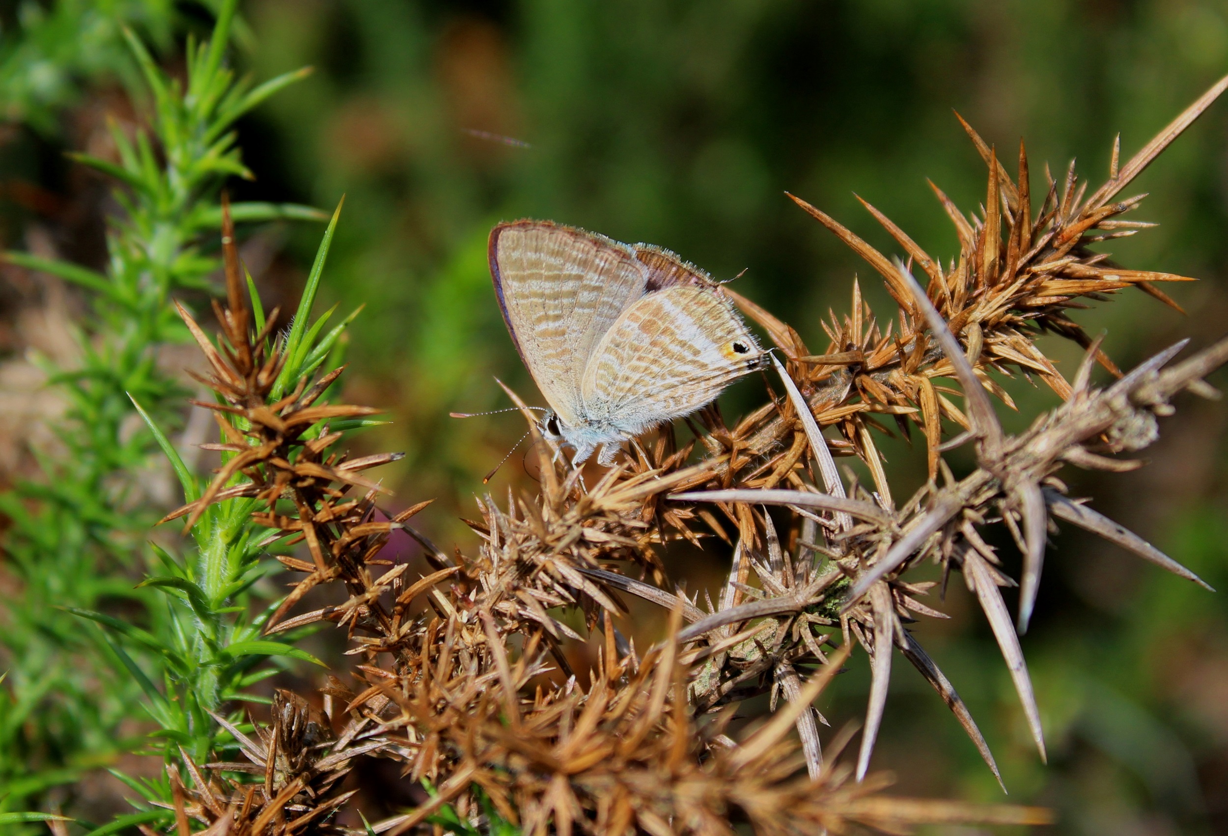 Our house was located about 6km northwest of Tavira in a hilly area filled with pine, oak, orange, fig and eucalyptus plantations which were surrounded by lavender, gum cystus and sage, hugging the hillsides in thick clumps. By July many of the flowers have gone over for the year, and much of land can appear dry and barren but I must admit I was pleasantly surprised by the wildlife that could be virtually seen from the doorstep. In addition the only plants still in flower were Clustered Carline Thistles, some French Lavender and the odd small Hawkweed, so finding nectaring insects wasn’t difficult. The Southern Gatekeeper was by far the commonest butterfly here and was accompanied by Meadow Browns and Small Heaths fluttering among the strands of grass. In the early morning sun, species such as the Sage, False Mallow and Red-underwing Skippers basked on the hot, stony pathways and fed avidly on the Carline Thistles. They were frequently joined by Common/Southern Blues, Small Coppers and the odd Southern Brown Argus. There were a few Clouded Yellows and Painted Ladies about and I managed to get a sighting of a Swallowtail feeding on the Lantana by the house and a Bath White resting beside the driveway. Whilst walking along the paths and dry riverbeds I frequently disturbed Blue-winged Grasshoppers, which as their name suggests, have distinctive blue wings which they keep hidden away whilst resting. The occasional Dwarf Mantis would walk across the patio by the pool which was always a pleasant sight; maybe not if I was a small grasshopper though! To top off the insects I stumbled across a Striped Hawkmoth, a large southern species which i found hiding in the shade; can’t say I’d blame it.