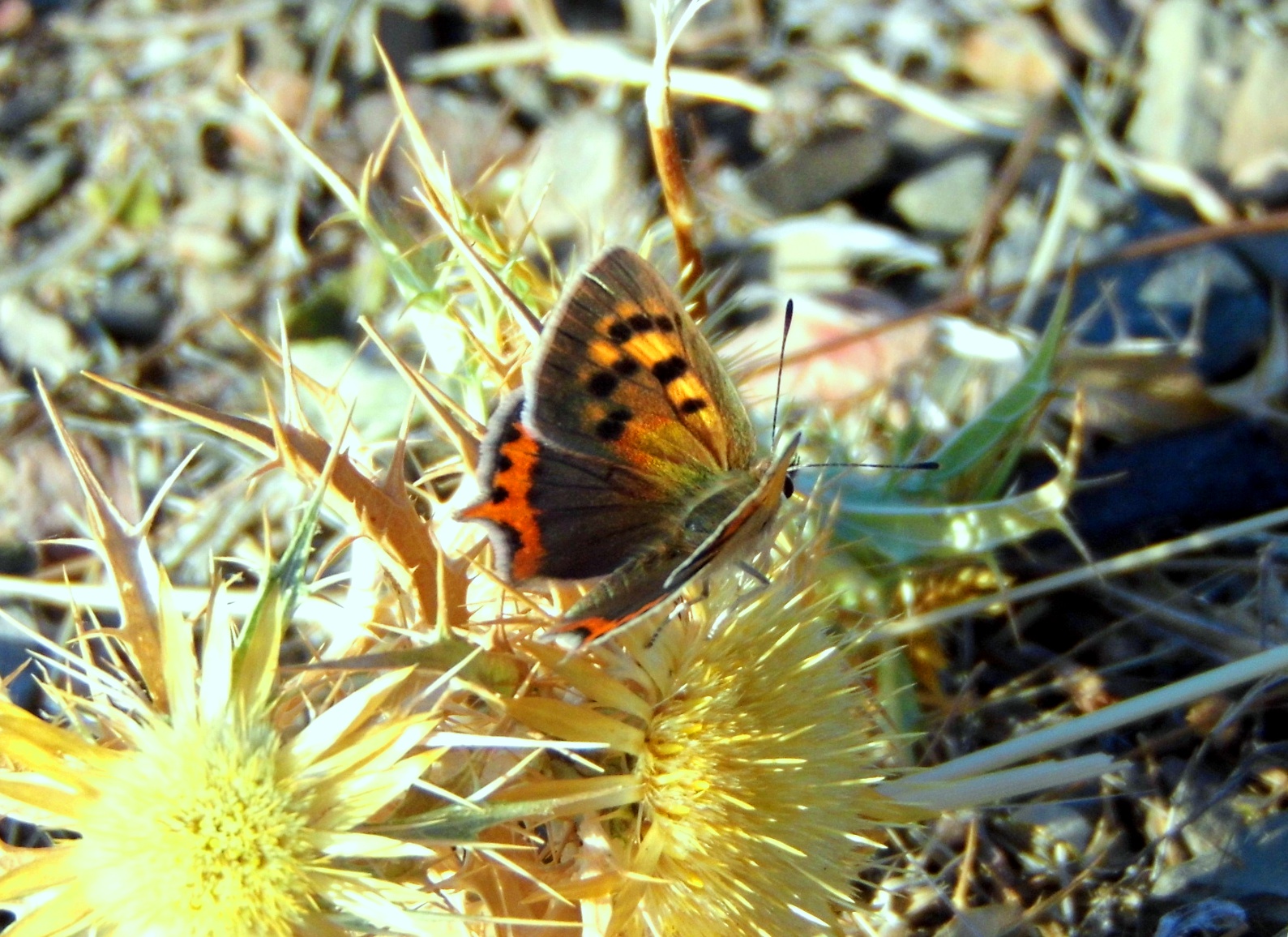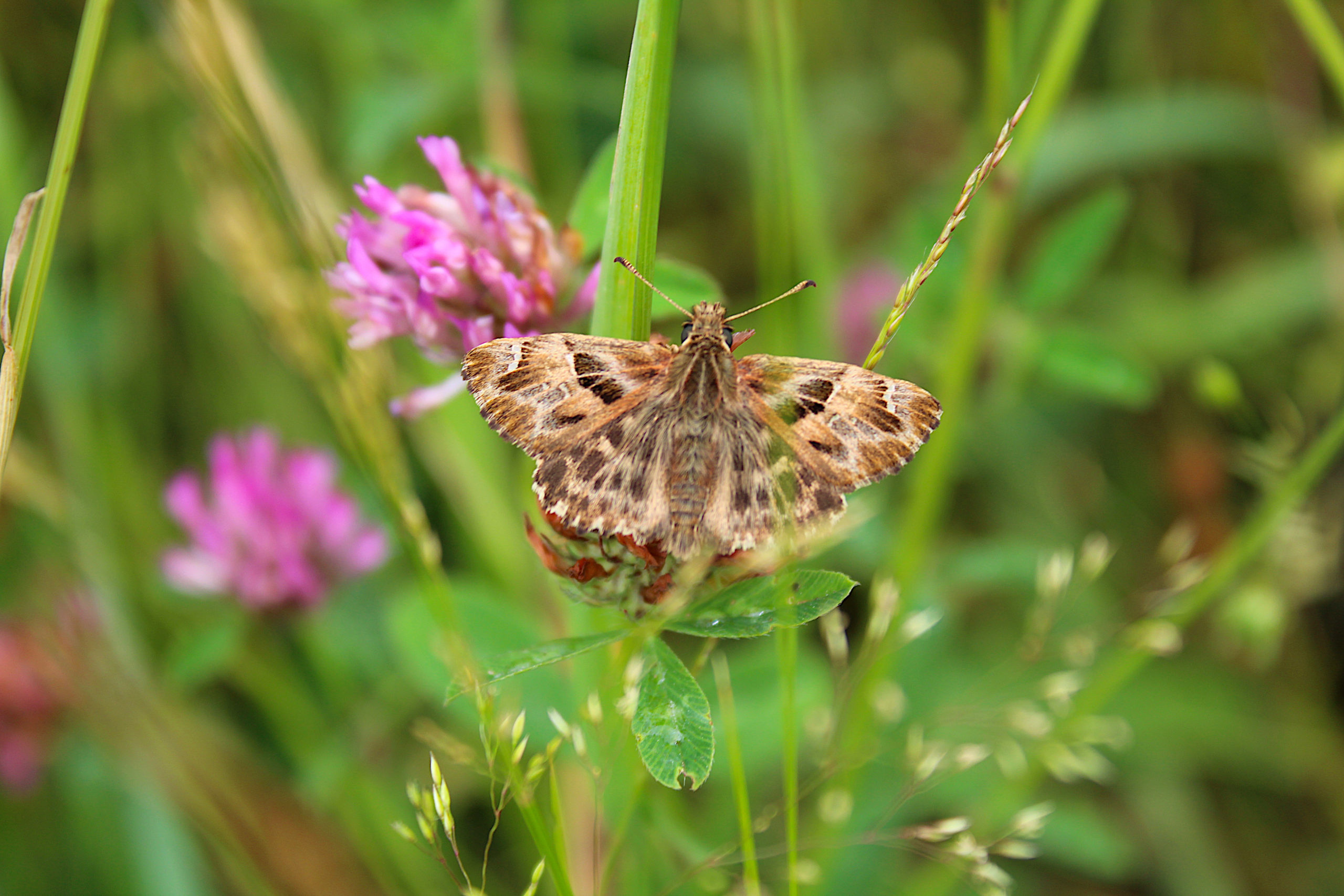 The route travelled on the remaining three days became increasingly less remote as we homed in on our destination, with busier roads and more buildings by the day. Still, every so often there would still be a patch of scrub or a flowery meadow which would be worth searching. I saw my first Wood White along this stretch, another species found in the UK and Ireland but prior to the trip had always managed to elude me! Long-tailed and Short-tailed Blues were seen in the scrubby areas, along with Large, Small and Essex Skippers, Pearly Heaths, Iberian Marbled Whites and Meadow Browns. I got some decent shots of the lovely Moss Carder Bee, which was seen shortly before I spotted the unusual Geranium Bronze butterfly, an invader from South Africa. Other species seen were the Brimstone, Clouded Yellow, Peacock, Beautiful Damoiselle, Silver-Washed Fritillary and Grayling.
